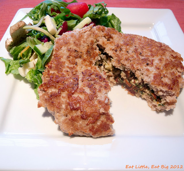 Last year, I made some Greek salad bison burgers that turned out great. This recipe is similar but made with lean ground turkey. These also turned out "really tasty" according to Mr. ELEB. I would agree!